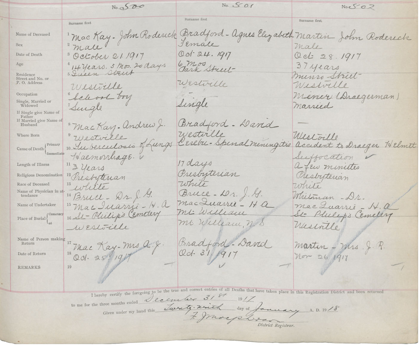 Death Registration: Year: 1917 book: 45 page: 153 number: 500