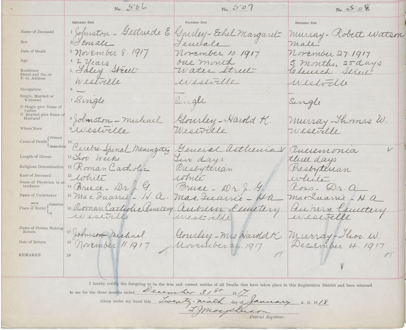 Death Registration: Year: 1917 book: 45 page: 154 number: 506