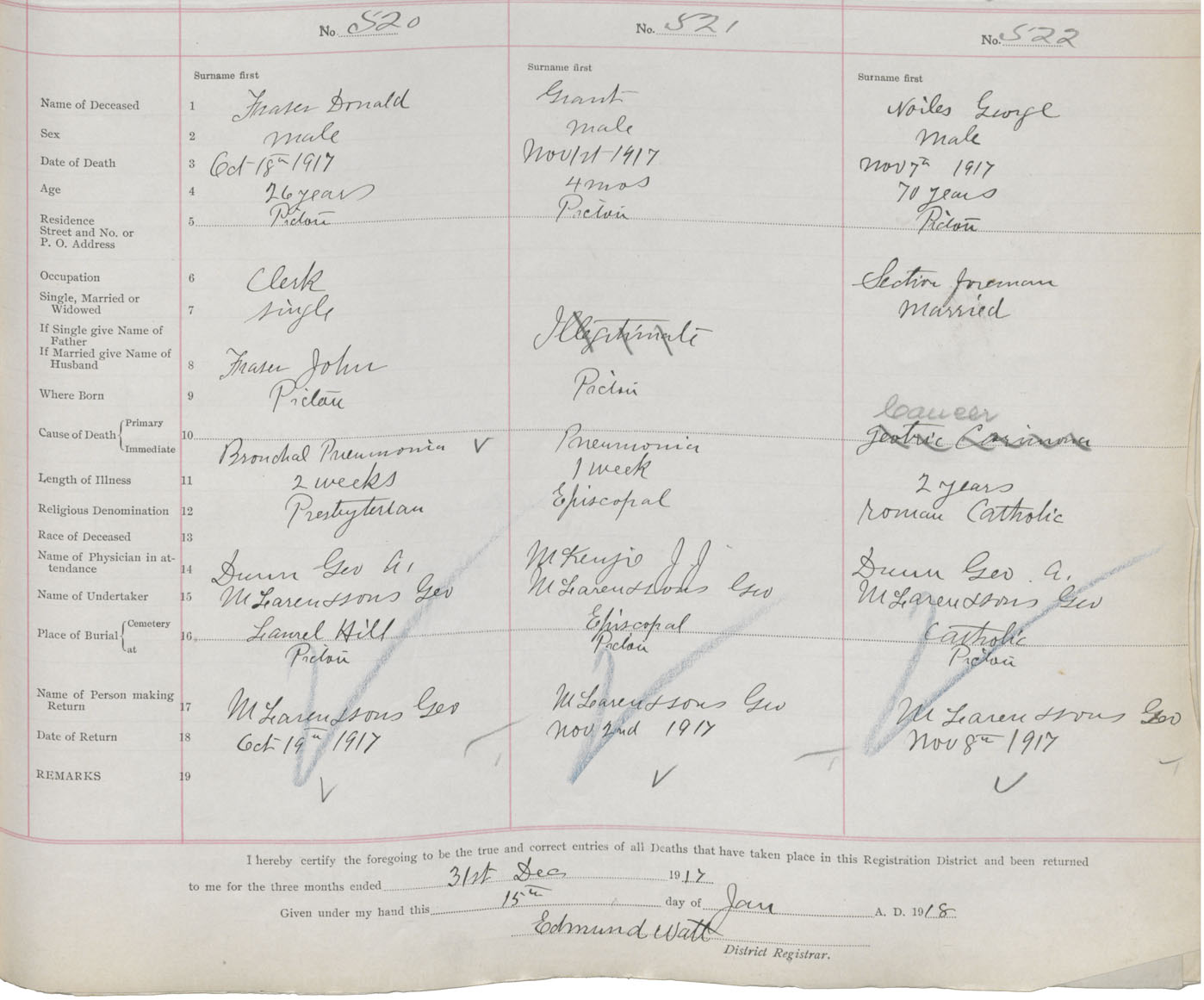 Death Registration: Year: 1917 book: 45 page: 159 number: 520