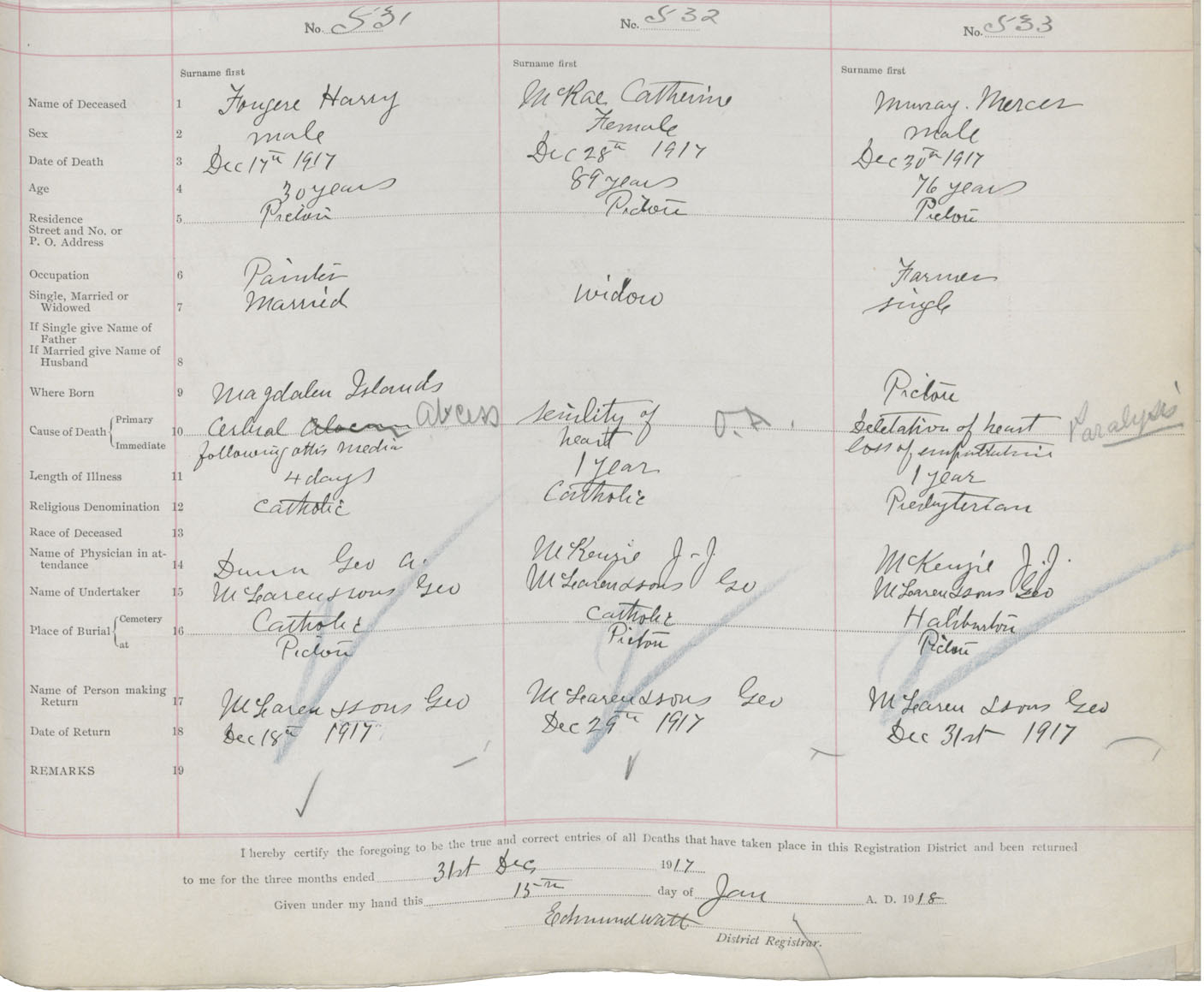 Death Registration: Year: 1917 book: 45 page: 161 number: 531