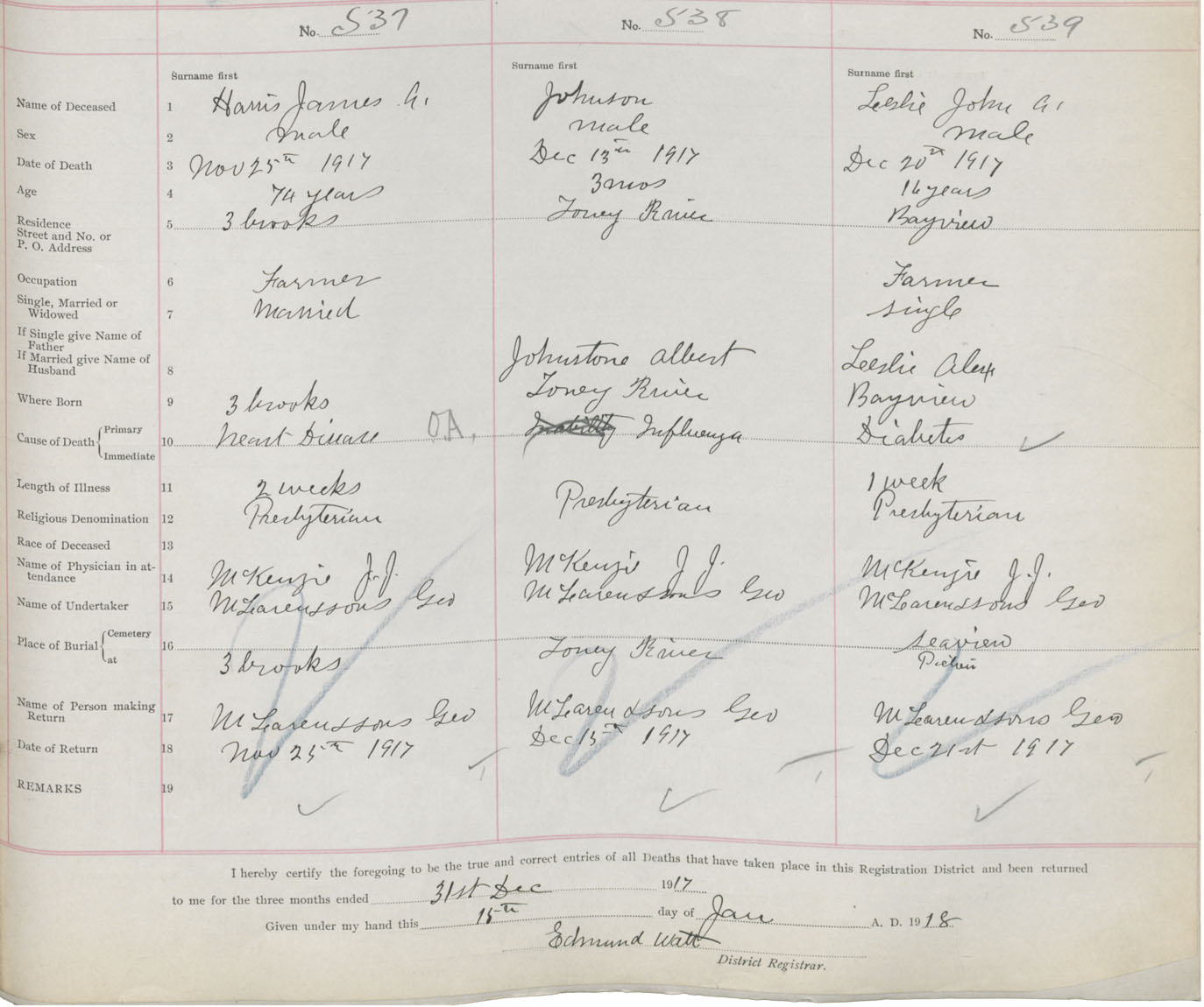 Death Registration: Year: 1917 book: 45 page: 163 number: 537