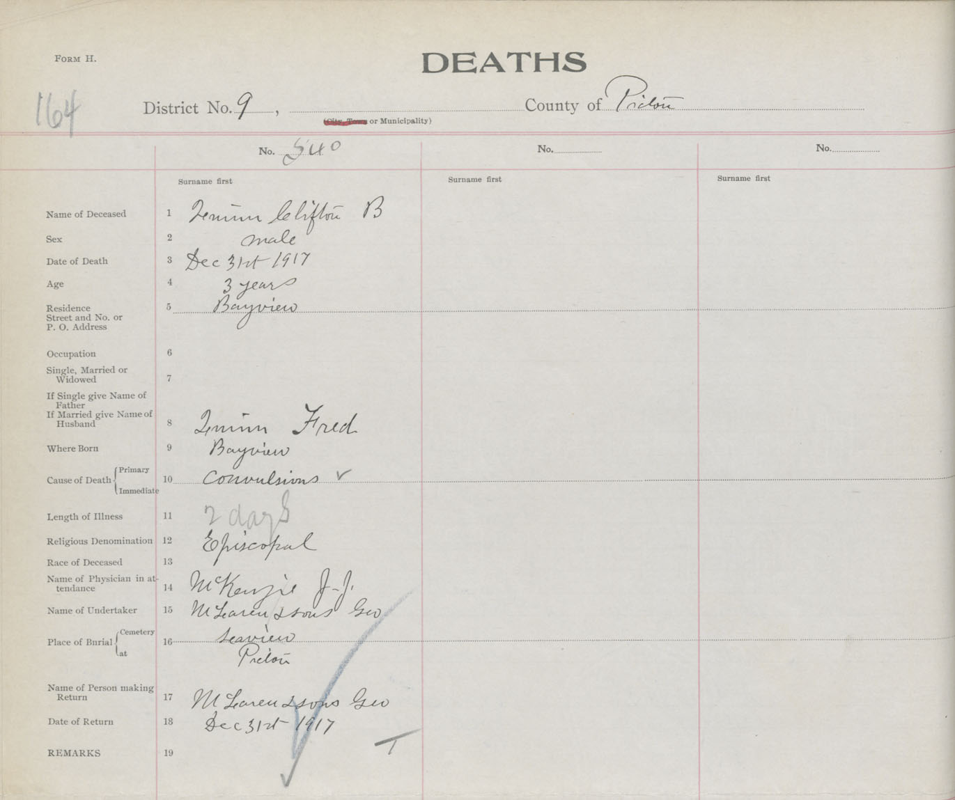 Death Registration: Year: 1917 book: 45 page: 164 number: 540