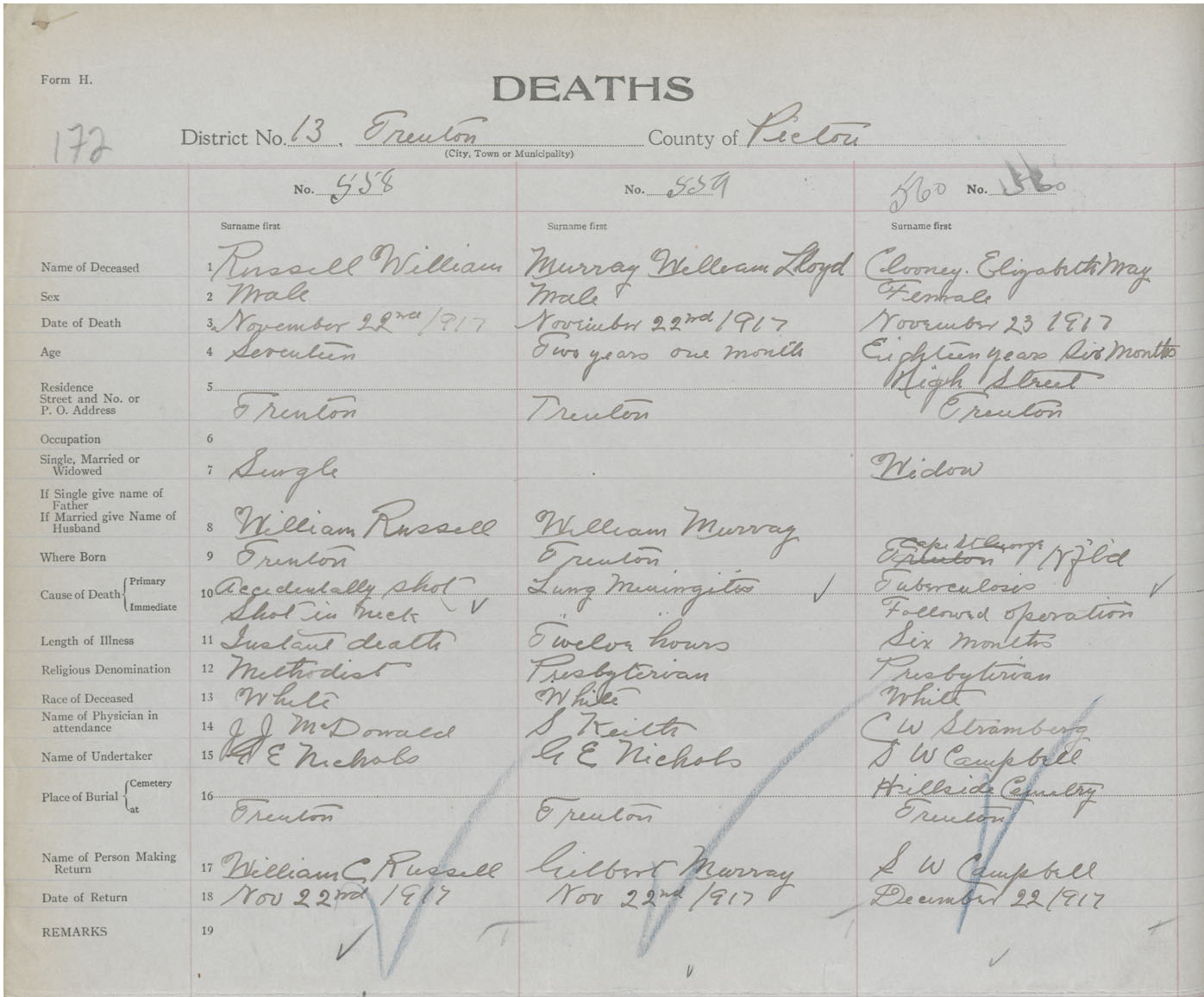 Death Registration: Year: 1917 book: 45 page: 172 number: 558