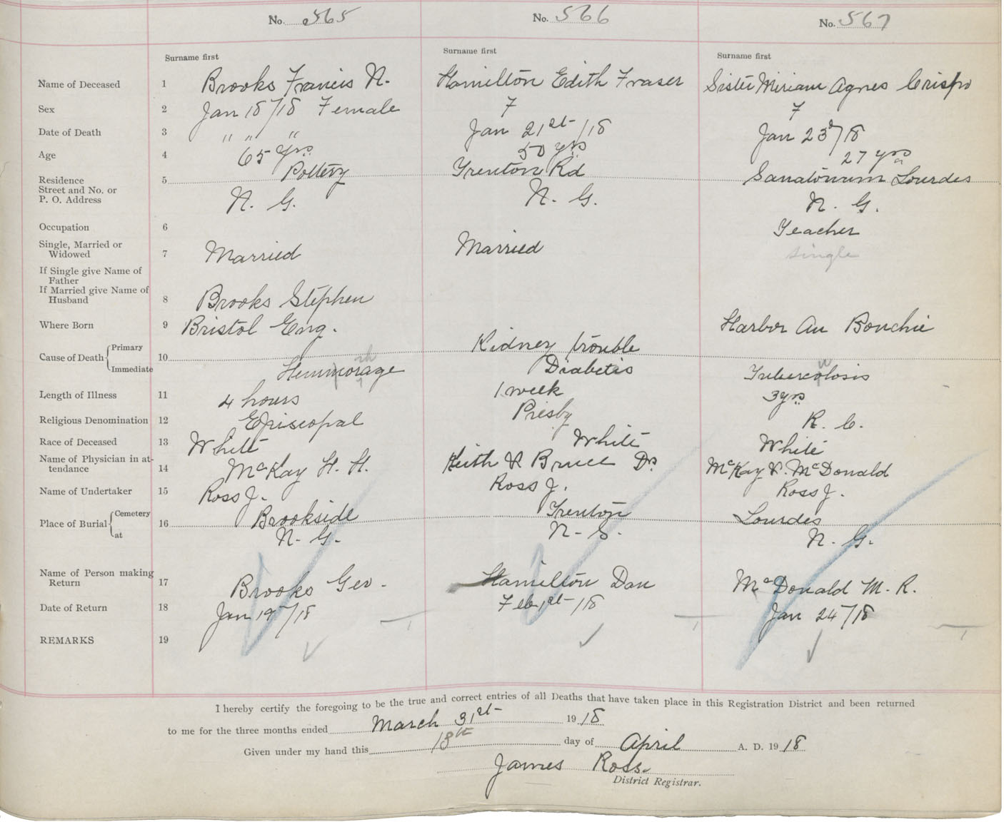 Death Registration: Year: 1917 book: 45 page: 173 number: 565