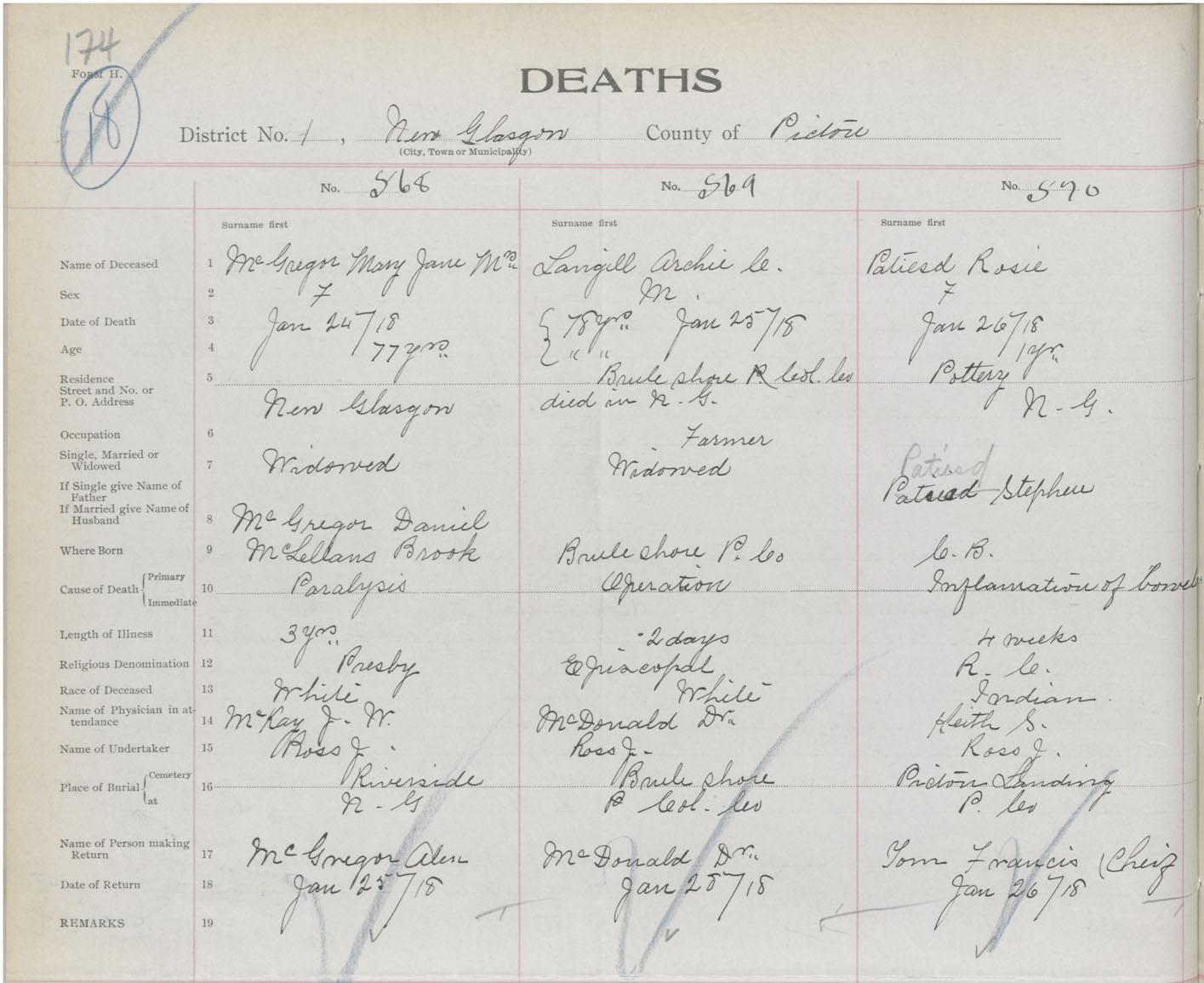 Death Registration: Year: 1918 book: 45 page: 174 number: 568