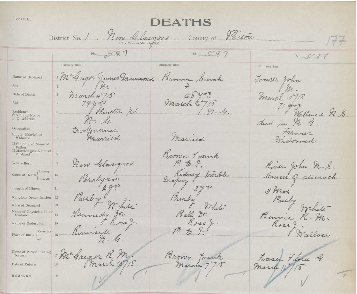 Death Registration: Year: 1918 book: 45 page: 177 number: 587