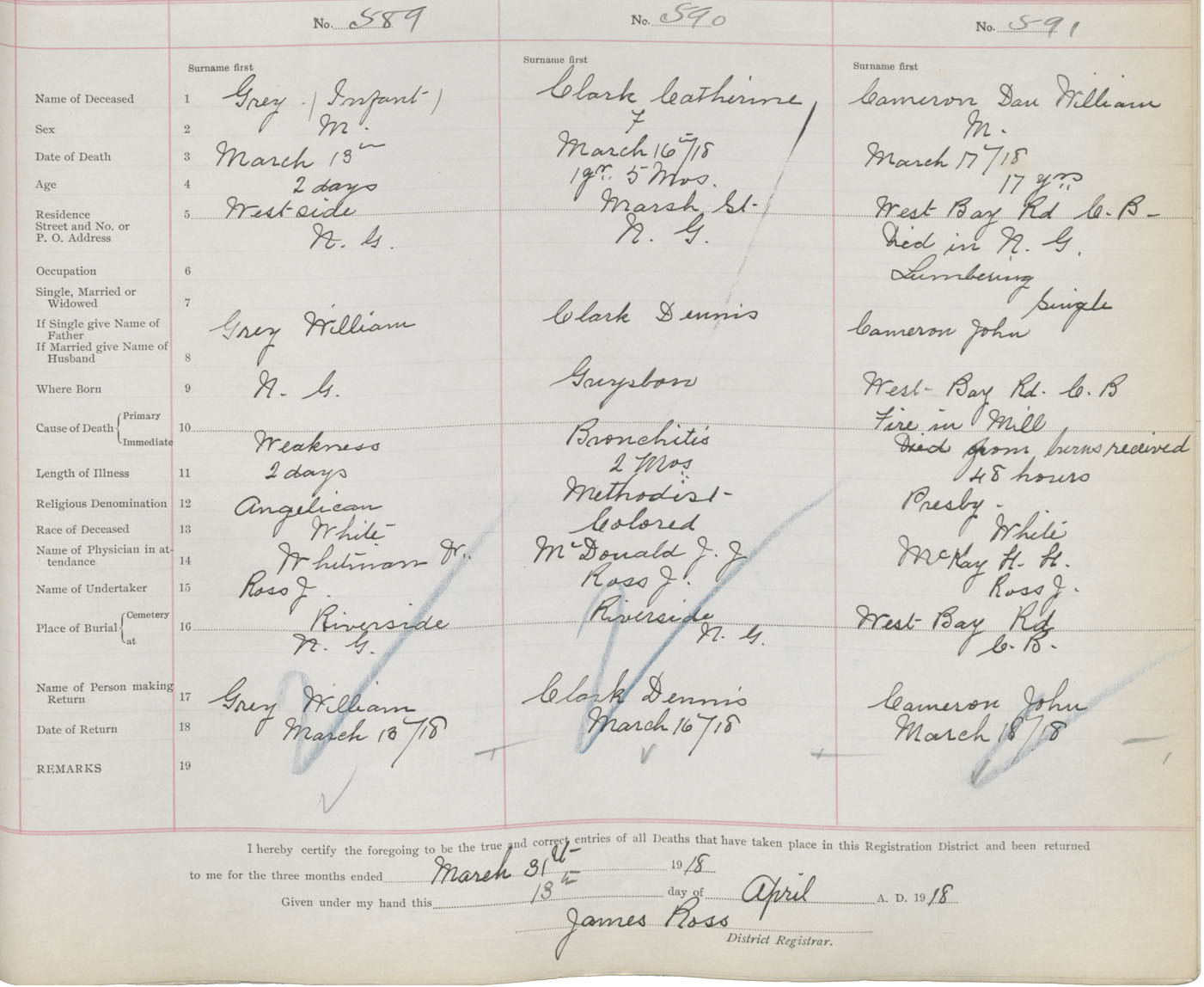 Death Registration: Year: 1918 book: 45 page: 177 number: 591