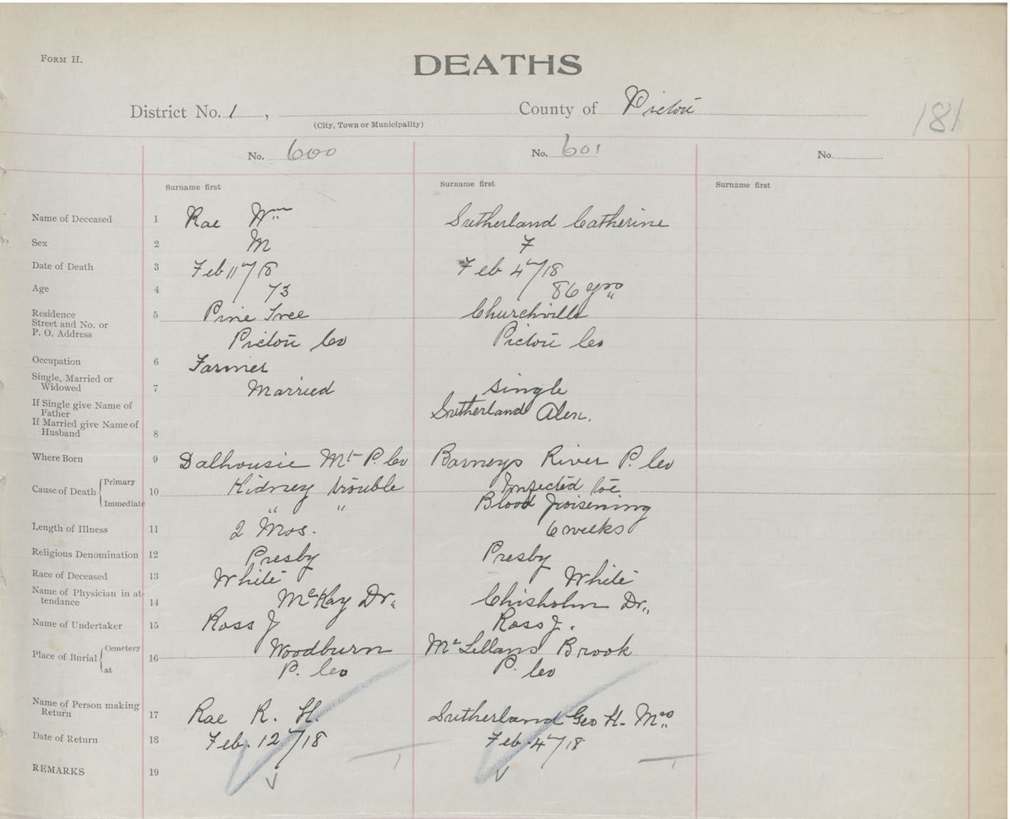 Death Registration: Year: 1918 book: 45 page: 181 number: 601