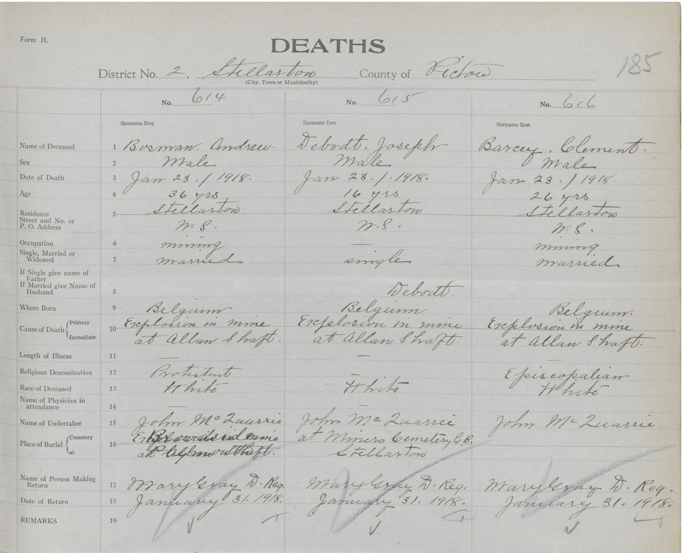 Death Registration: Year: 1918 book: 45 page: 185 number: 616