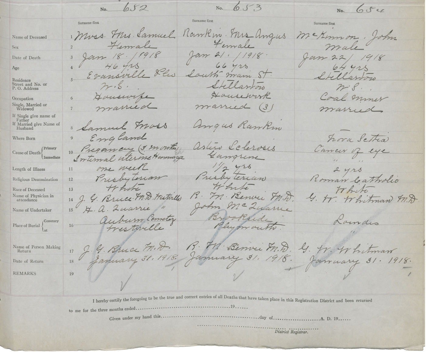 Death Registration: Year: 1918 book: 45 page: 191 number: 654