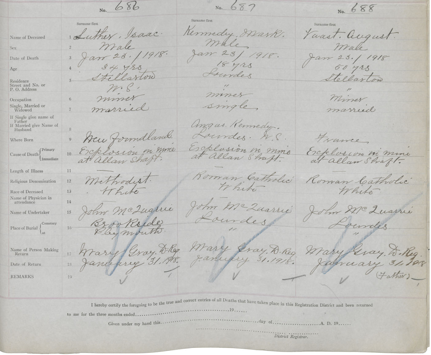 Death Registration: Year: 1918 book: 45 page: 195 number: 688