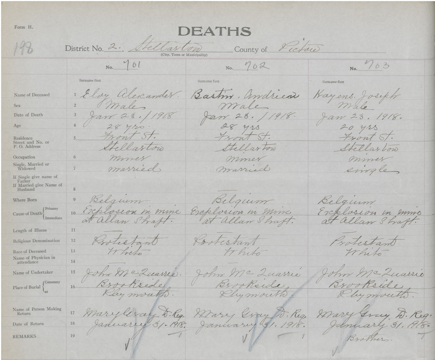 Death Registration: Year: 1918 book: 45 page: 198 number: 703