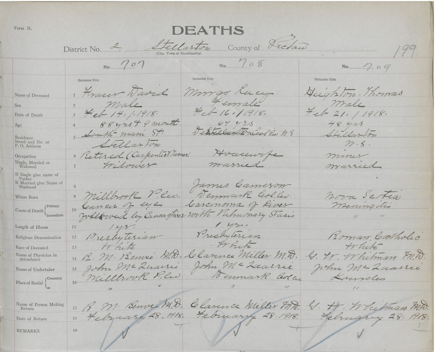 Death Registration: Year: 1918 book: 45 page: 199 number: 709