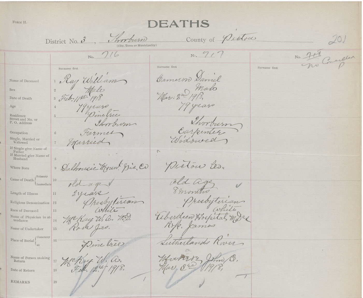 Death Registration: Year: 1918 book: 45 page: 201 number: 717