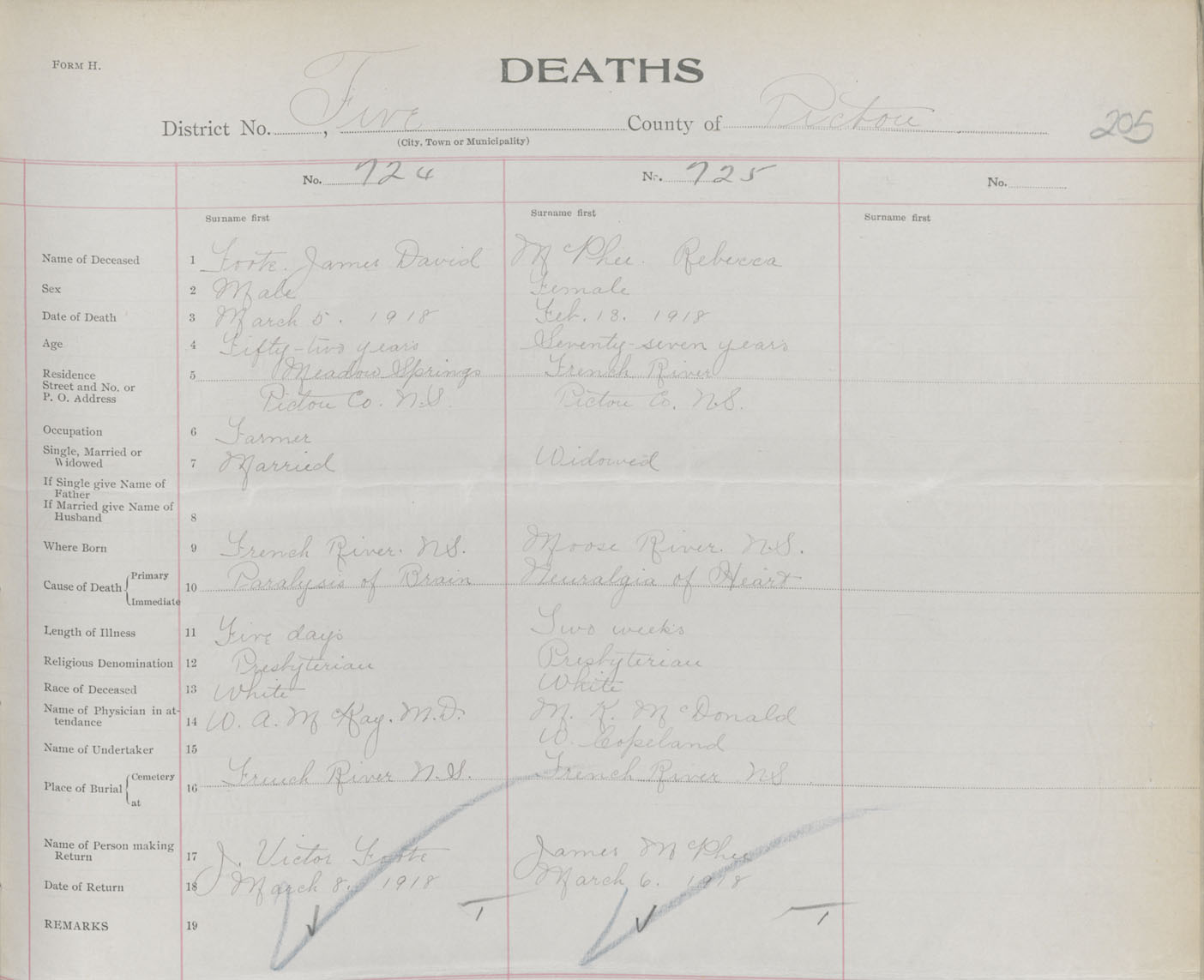 Death Registration: Year: 1918 book: 45 page: 205 number: 725