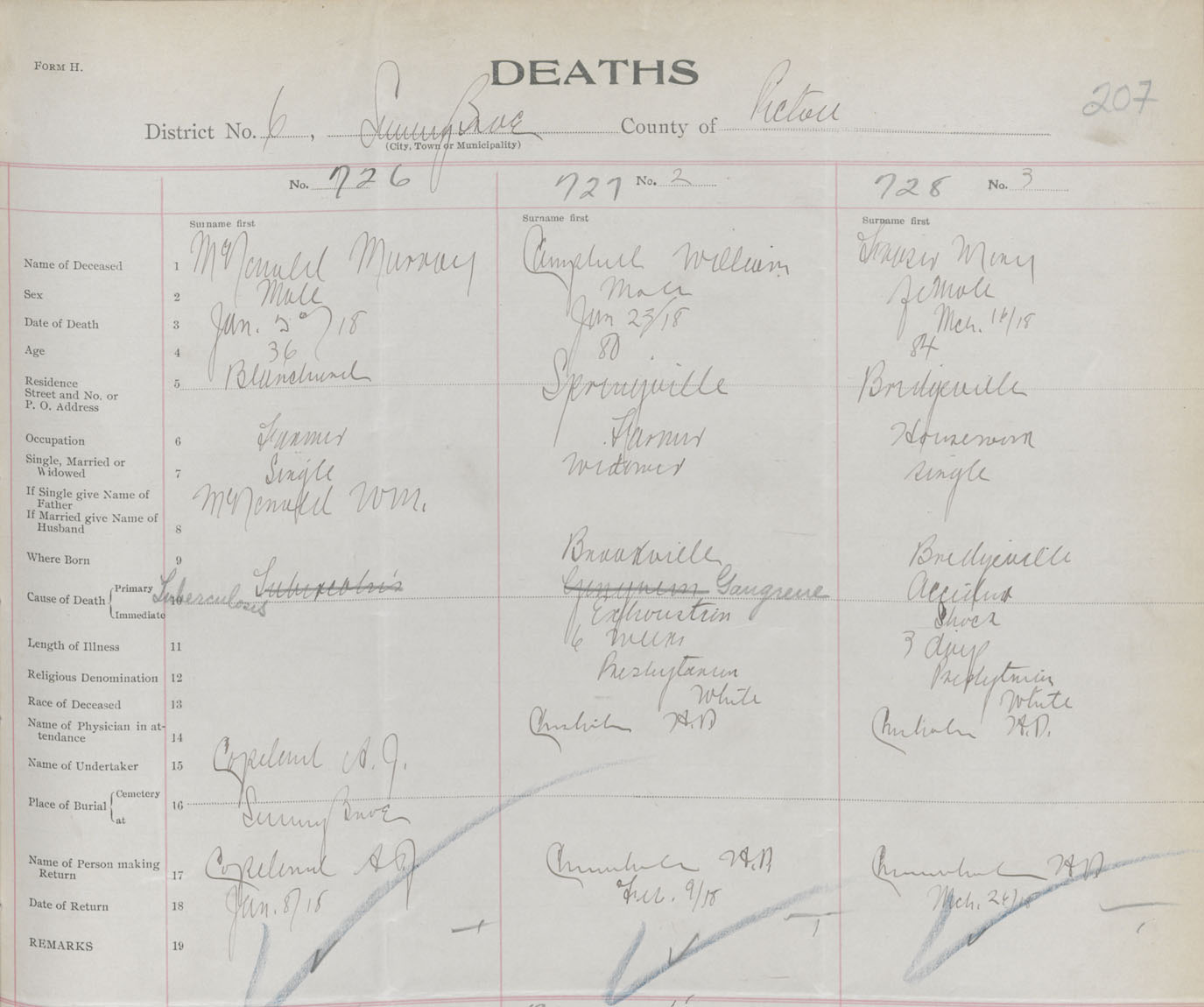 Male Death Registration: Year: 1918 book: 45 page: 207 number: 726