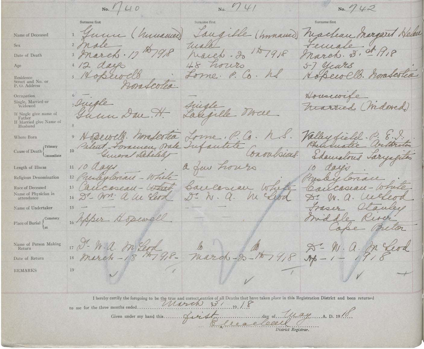 Death Registration: Year: 1918 book: 45 page: 210 number: 740