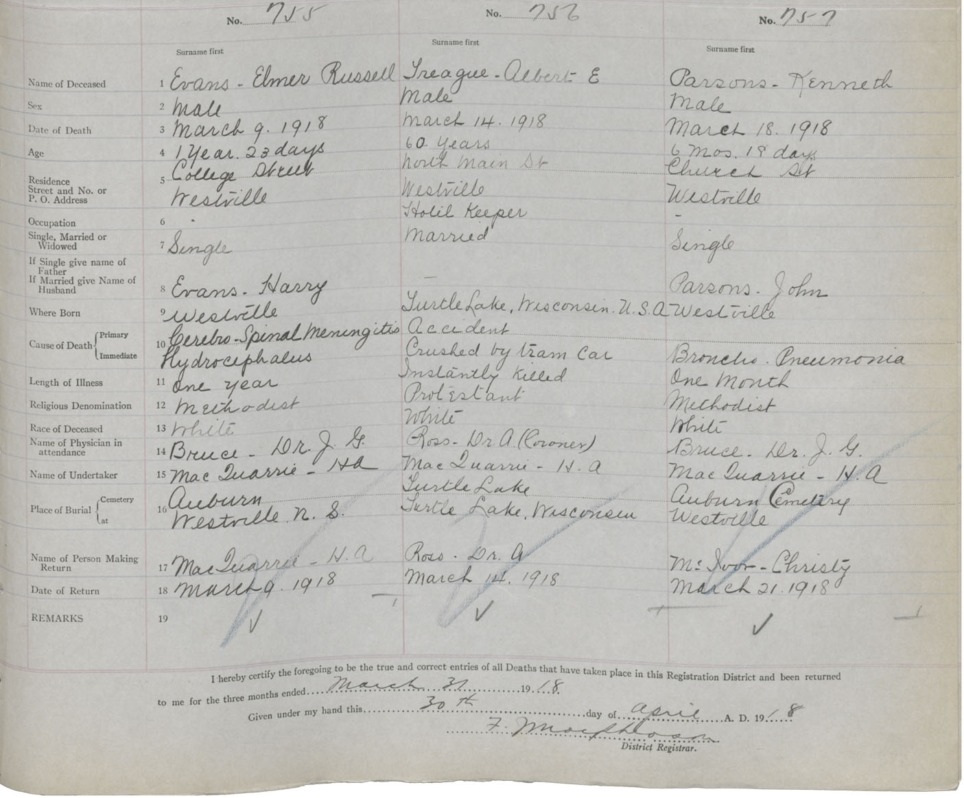 Death Registration: Year: 1918 book: 45 page: 215 number: 755