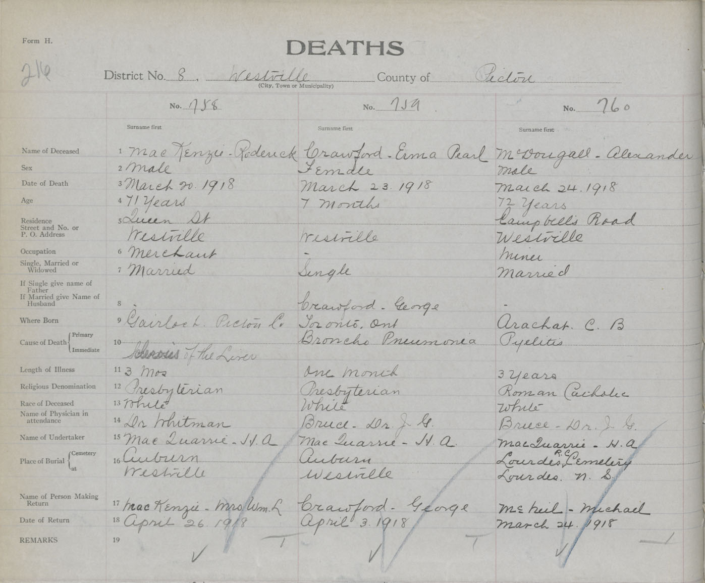 Death Registration: Year: 1918 book: 45 page: 216 number: 758
