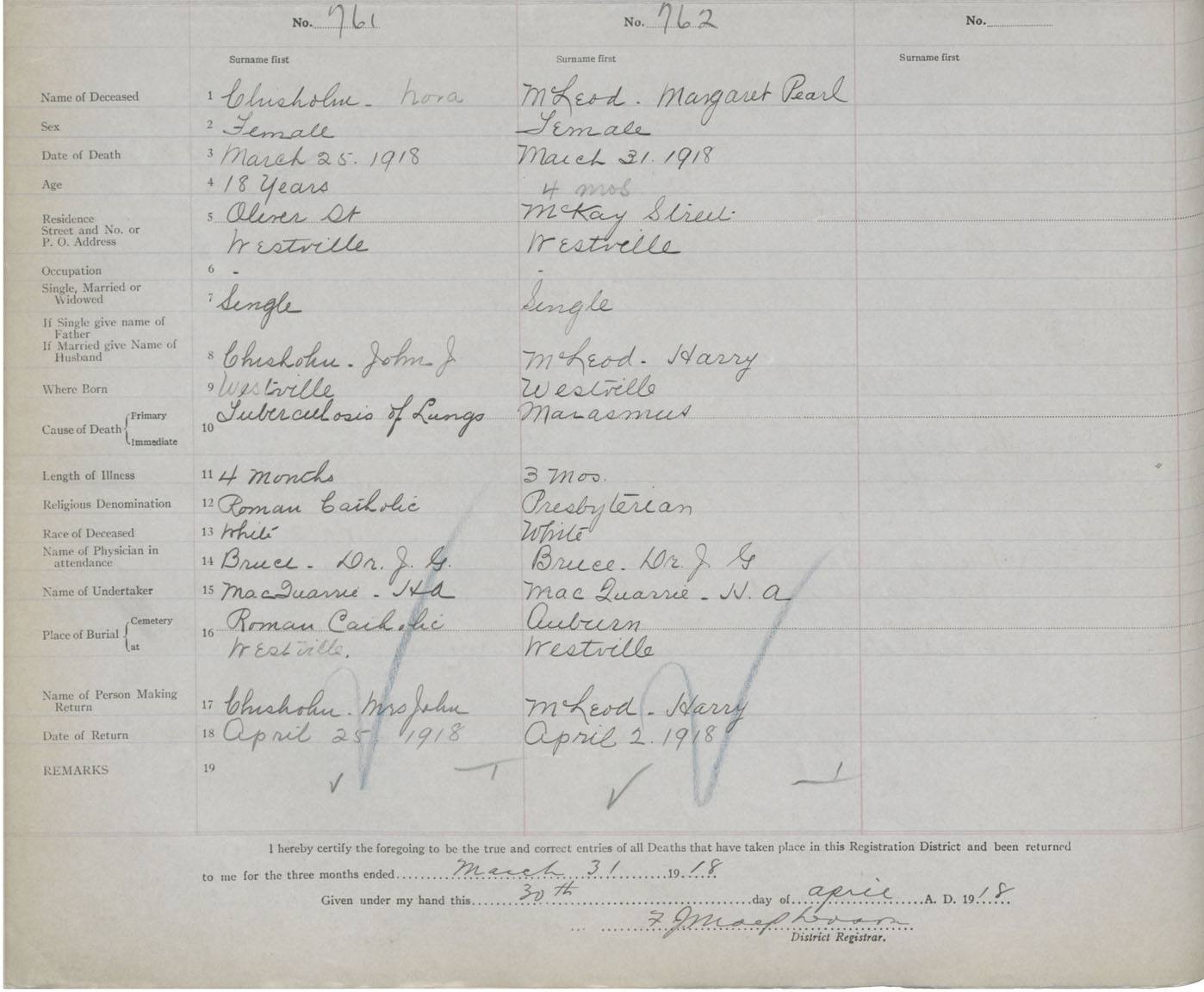 Death Registration: Year: 1918 book: 45 page: 216 number: 761