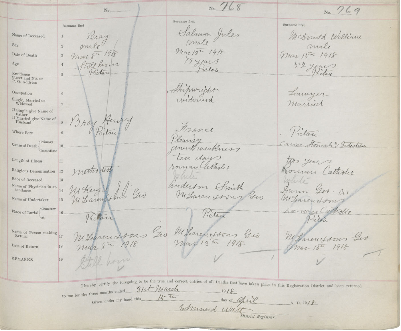 Death Registration: Year: 1918 book: 45 page: 219 number: 768