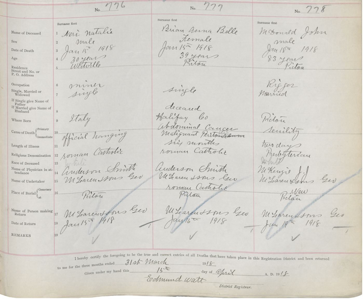 Death Registration: Year: 1918 book: 45 page: 221 number: 776