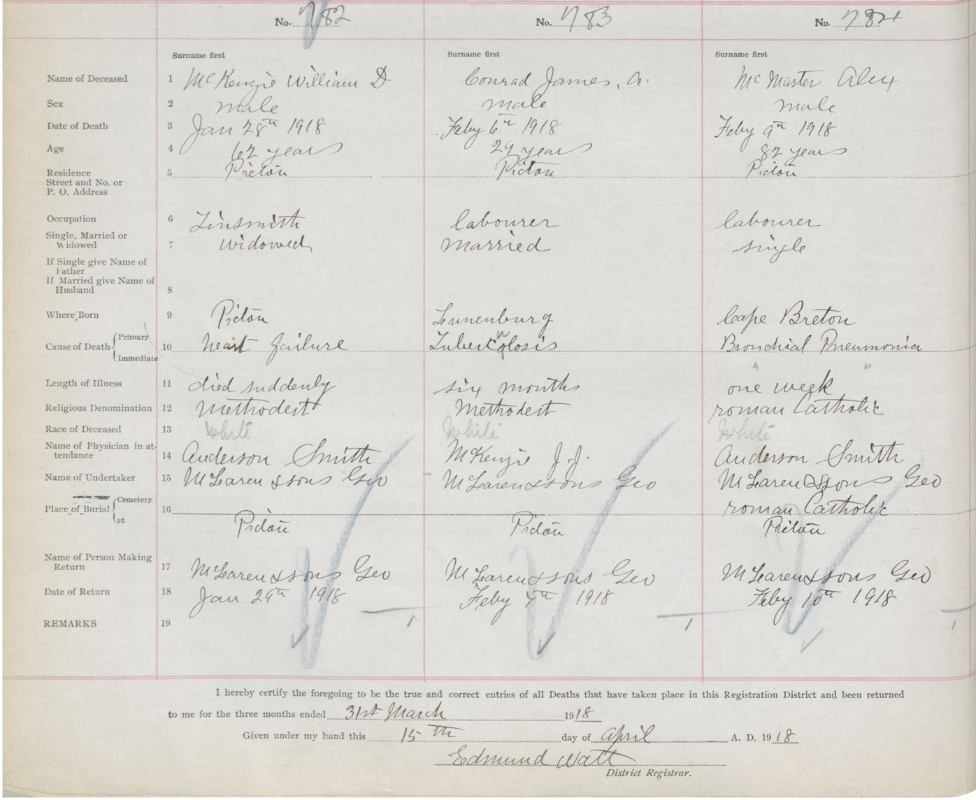 Death Registration: Year: 1918 book: 45 page: 222 number: 782