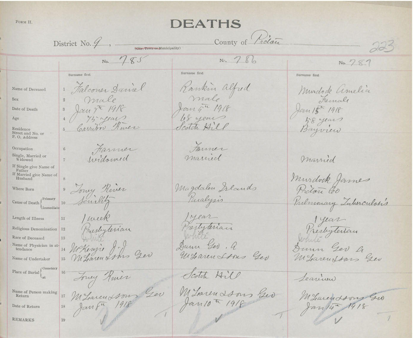 Death Registration: Year: 1918 book: 45 page: 223 number: 785