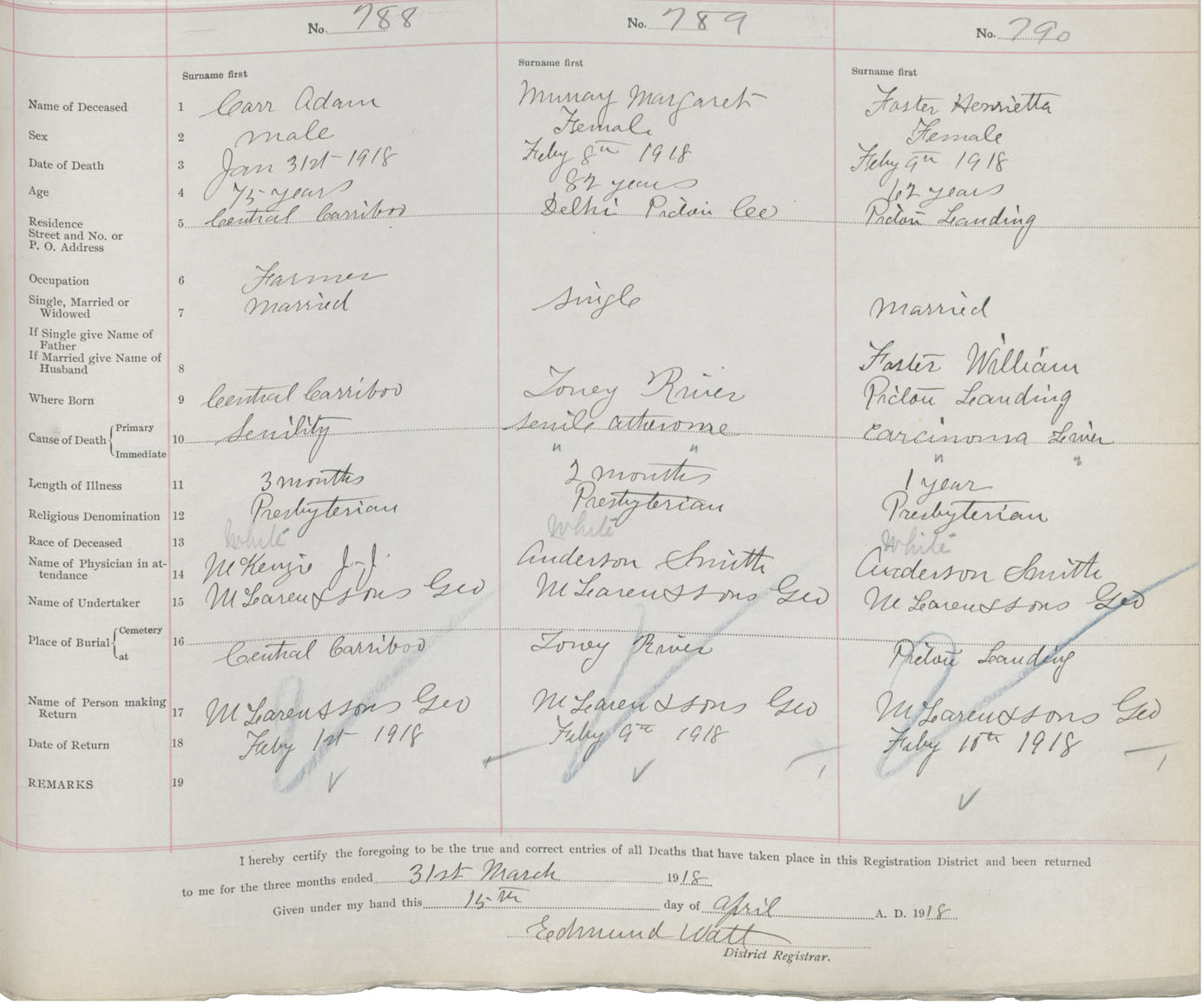 Death Registration: Year: 1918 book: 45 page: 223 number: 788