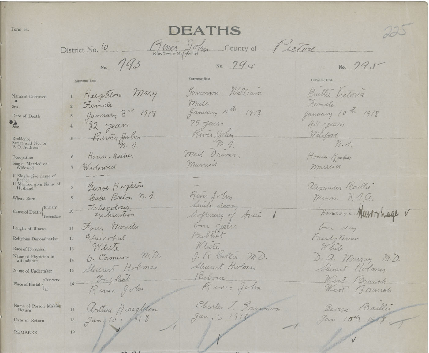 Death Registration: Year: 1918 book: 45 page: 225 number: 793