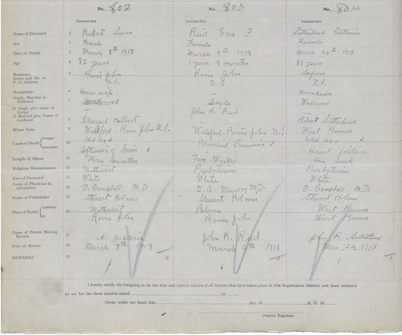 Death Registration: Year: 1918 book: 45 page: 226 number: 802