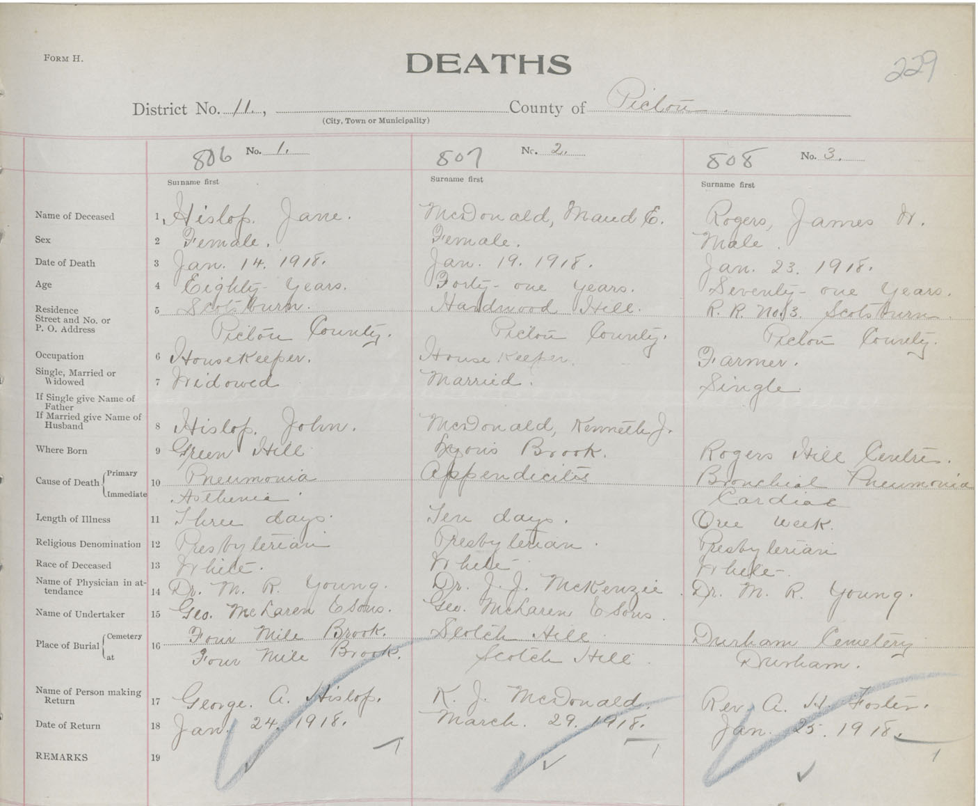Death Registration: Year: 1918 book: 45 page: 229 number: 808