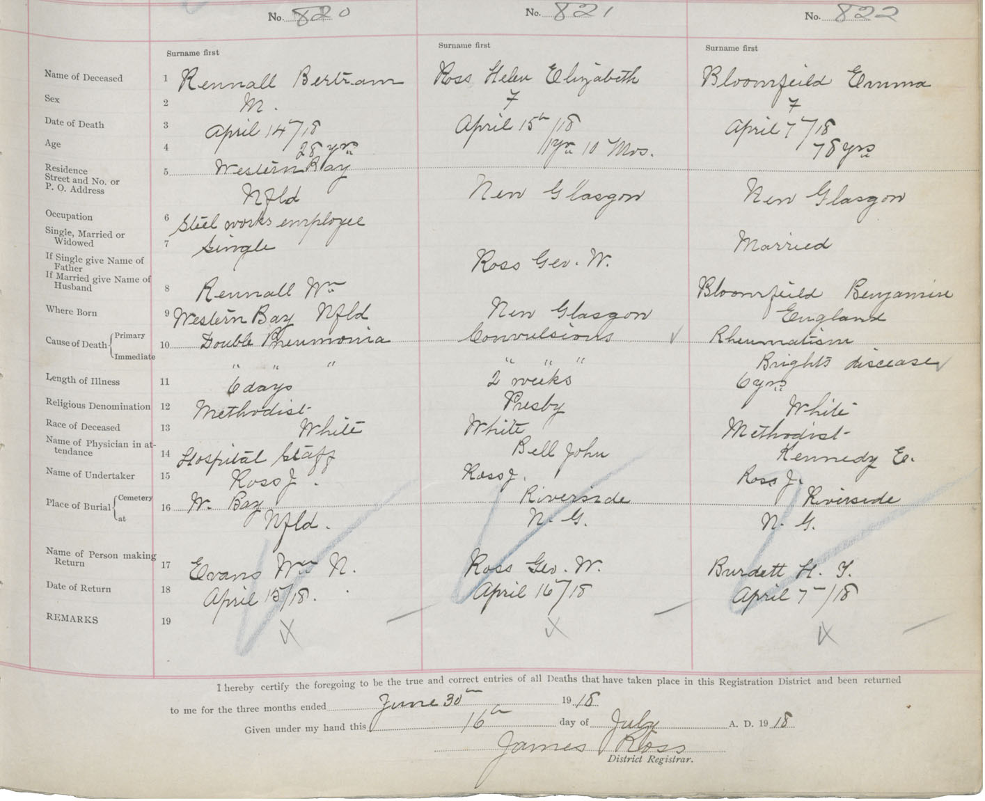 Death Registration: Year: 1918 book: 45 page: 233 number: 822