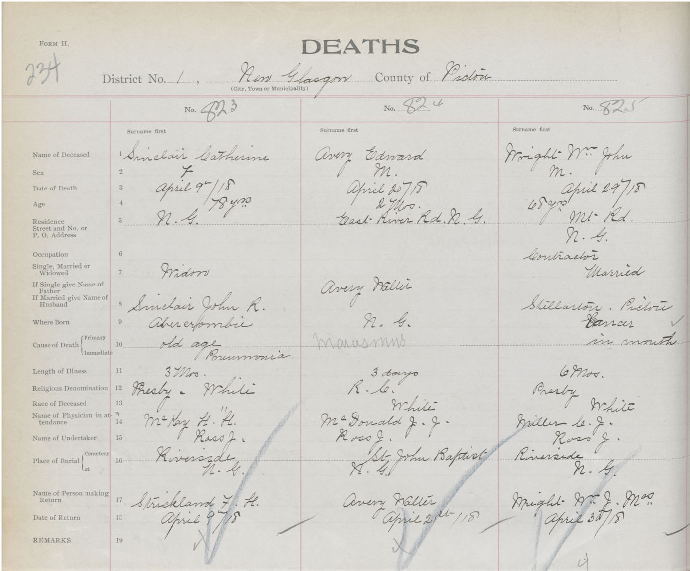 Death Registration: Year: 1918 book: 45 page: 234 number: 825