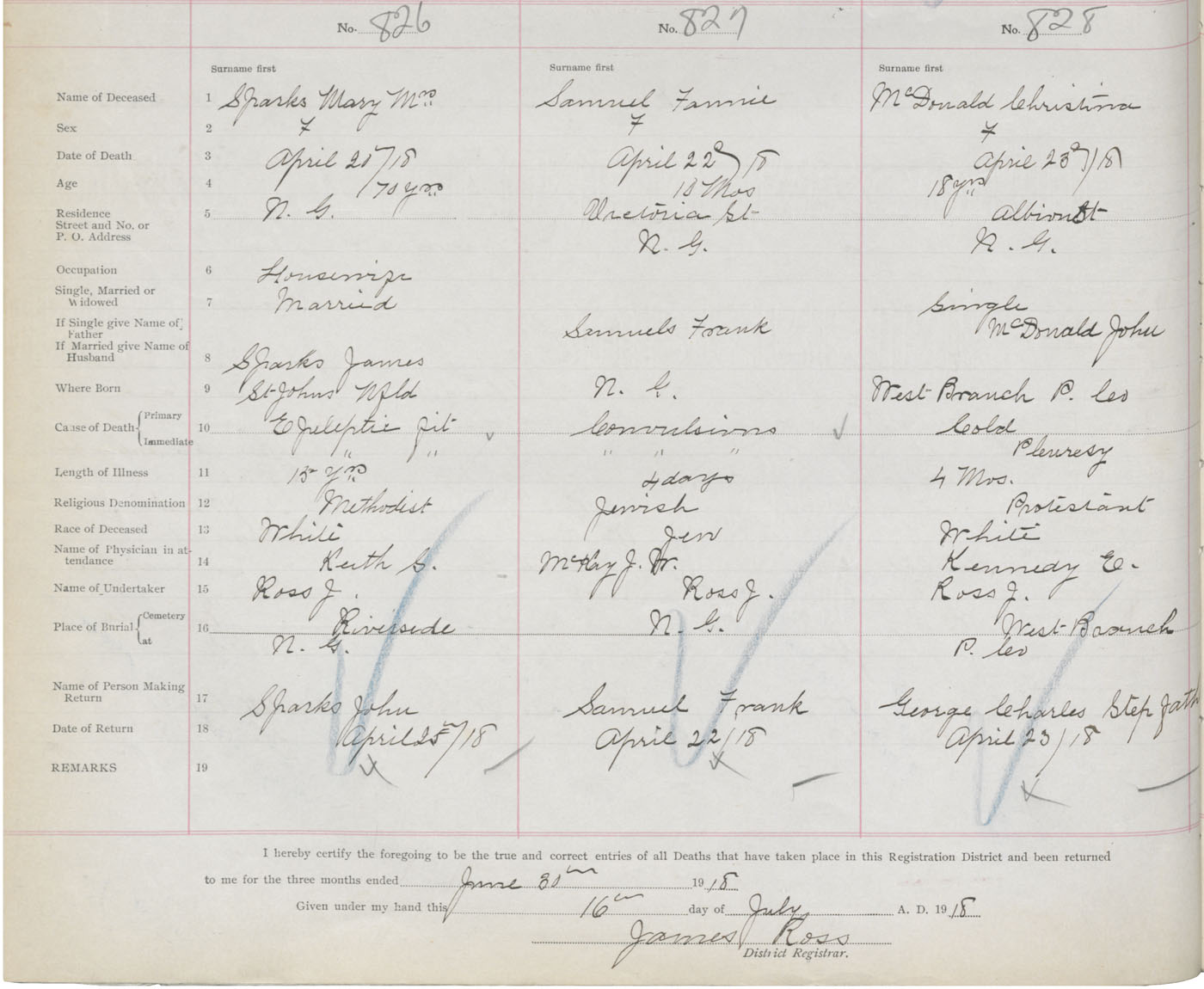 Death Registration: Year: 1918 book: 45 page: 234 number: 828