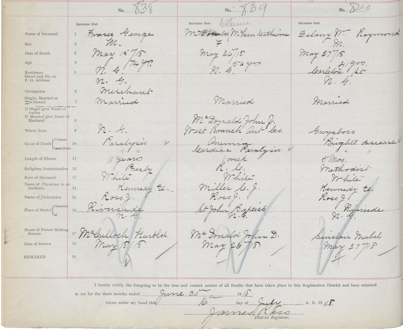 Death Registration: Year: 1918 book: 45 page: 236 number: 840