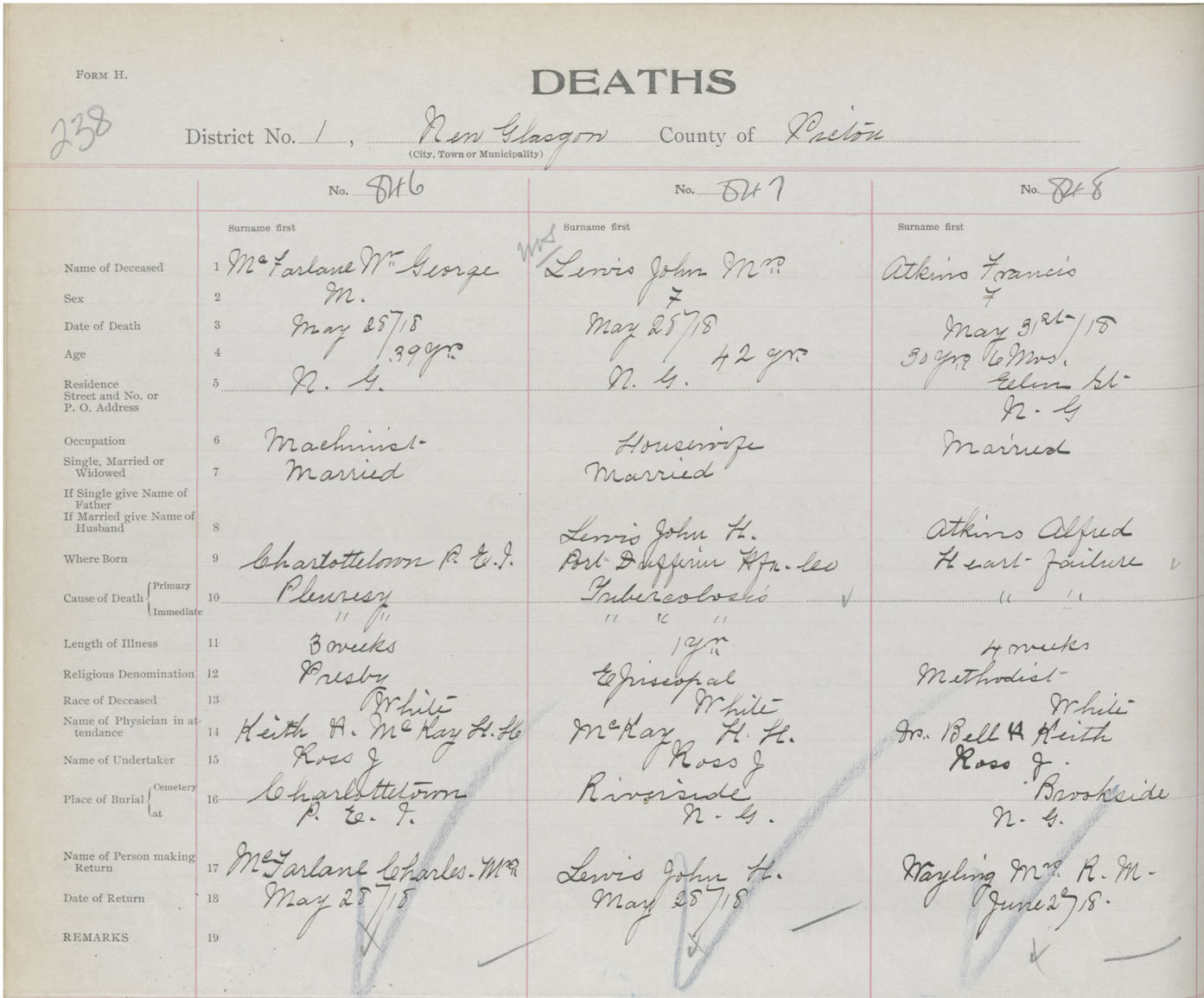 Death Registration: Year: 1918 book: 45 page: 238 number: 848