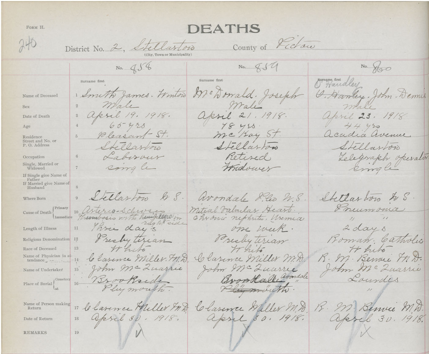 Death Registration: Year: 1918 book: 45 page: 240 number: 860