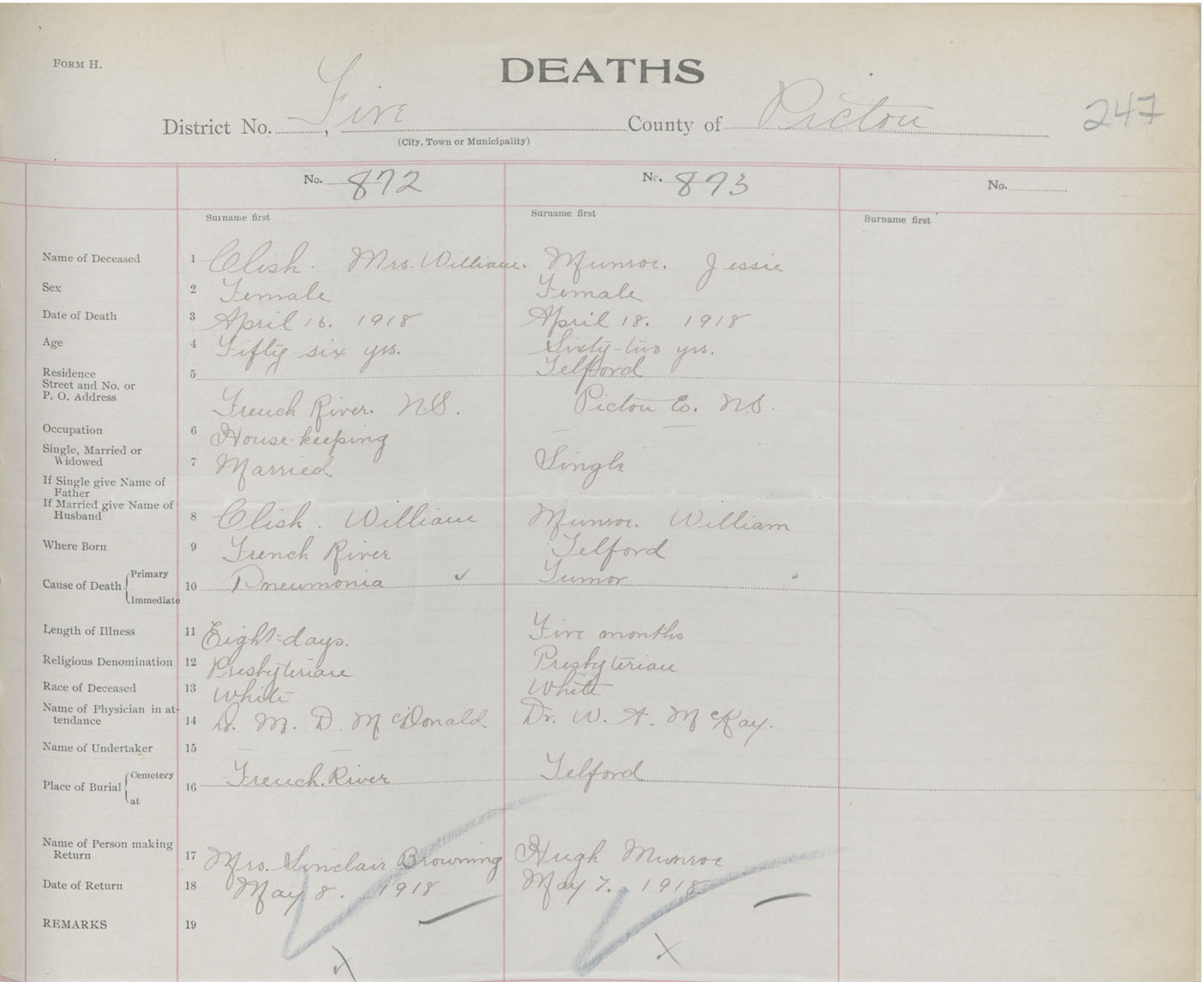 Death Registration: Year: 1918 book: 45 page: 247 number: 873