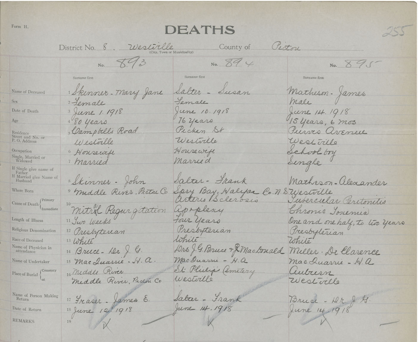 Death Registration: Year: 1918 book: 45 page: 255 number: 893