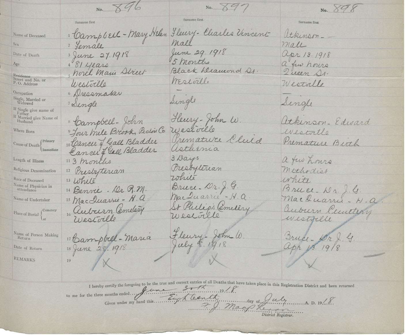 Death Registration: Year: 1918 book: 45 page: 255 number: 896