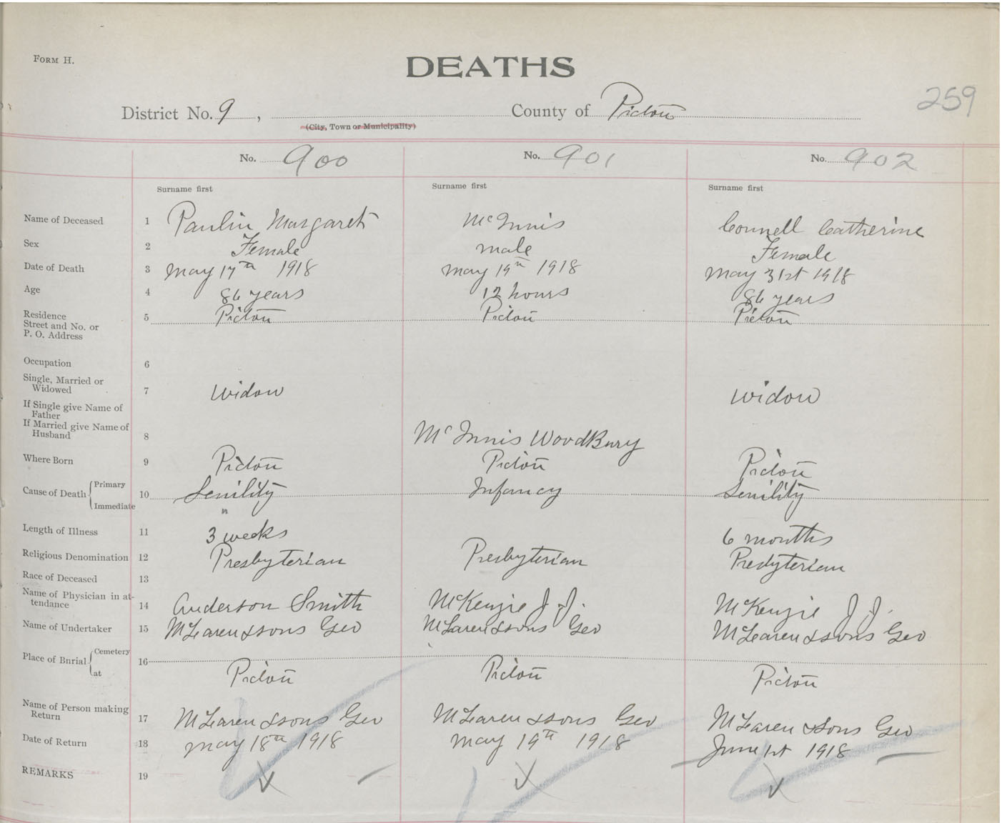 Death Registration: Year: 1918 book: 45 page: 259 number: 900