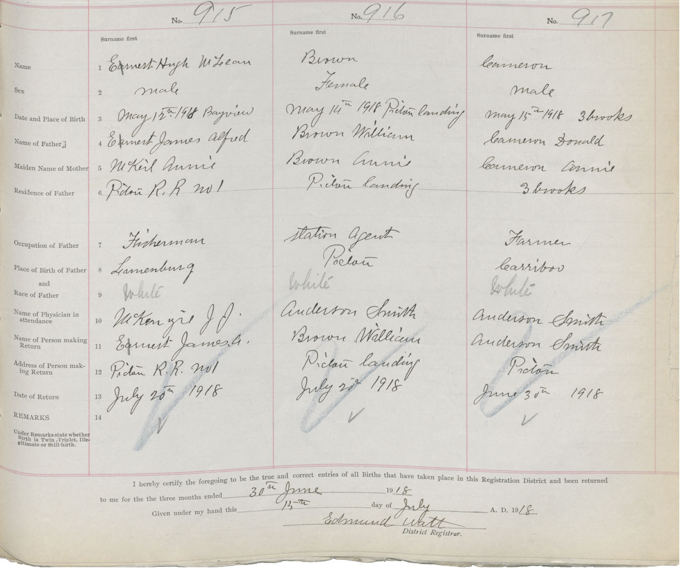Death Registration: Year: 1918 book: 45 page: 261 number: 915