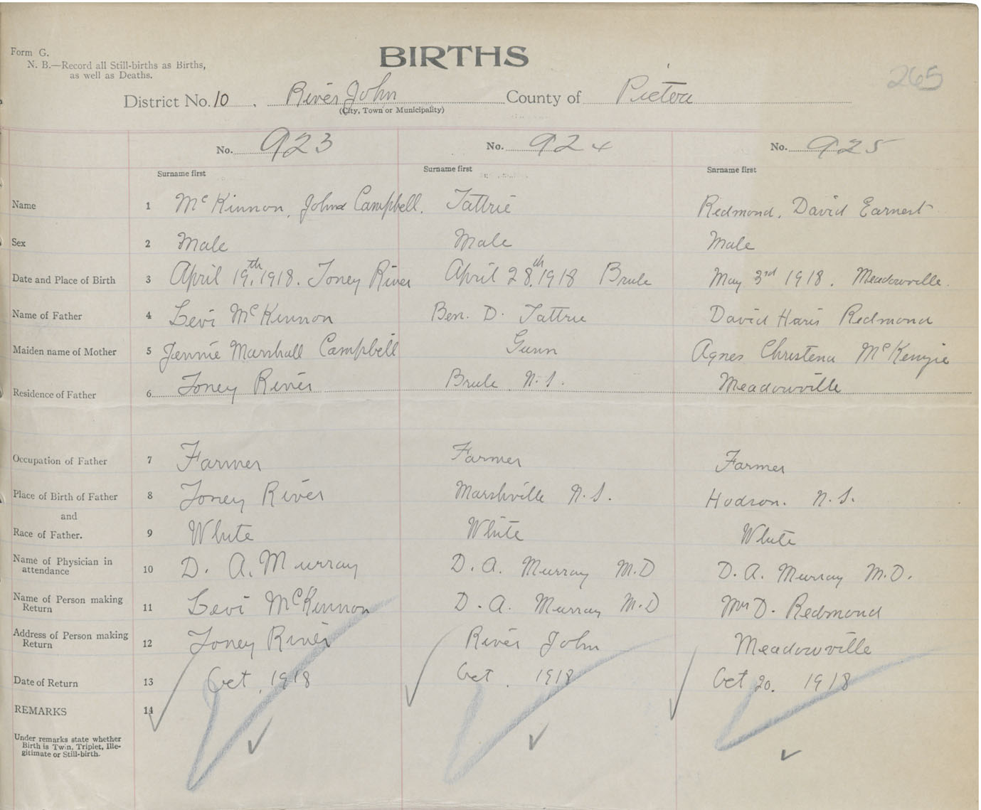 Death Registration: Year: 1918 book: 45 page: 265 number: 923