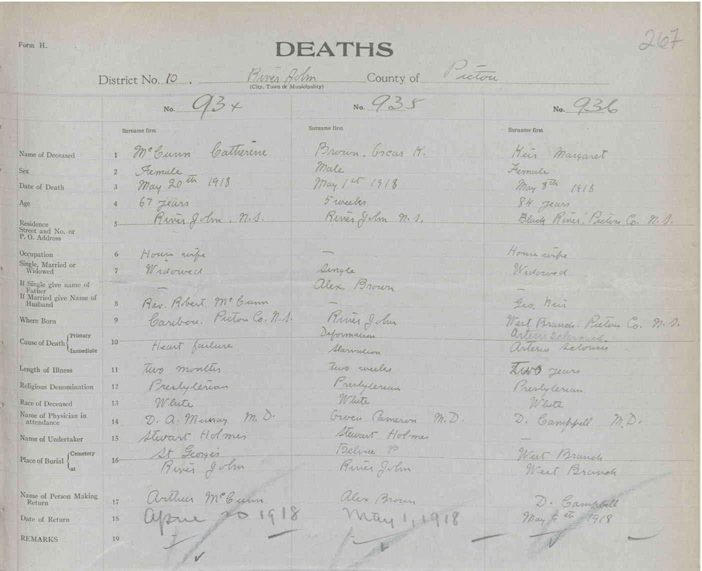 Death Registration: Year: 1918 book: 45 page: 267 number: 934