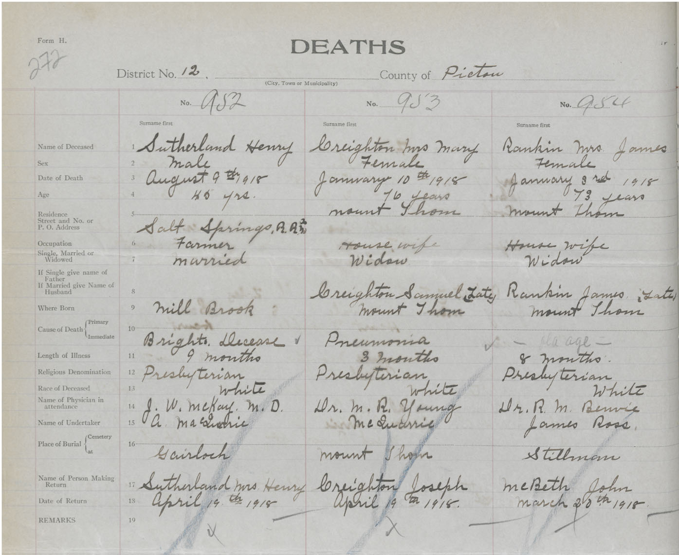 Death Registration: Year: 1918 book: 45 page: 272 number: 952