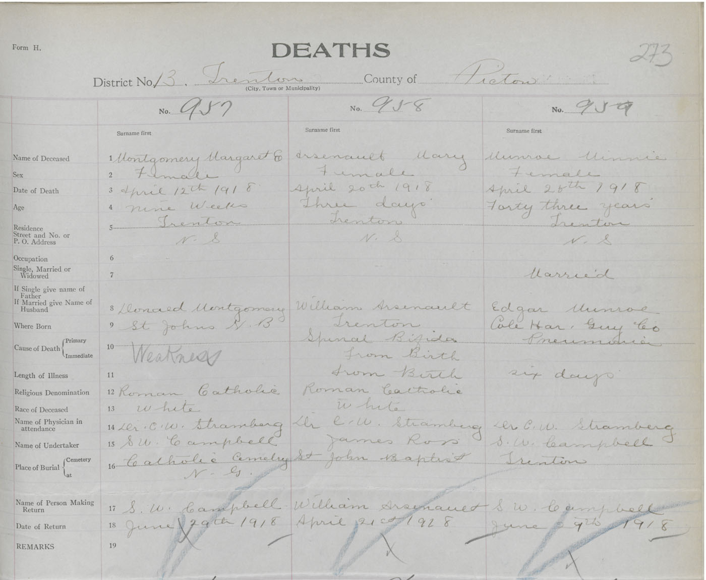Death Registration: Year: 1918 book: 45 page: 273 number: 957