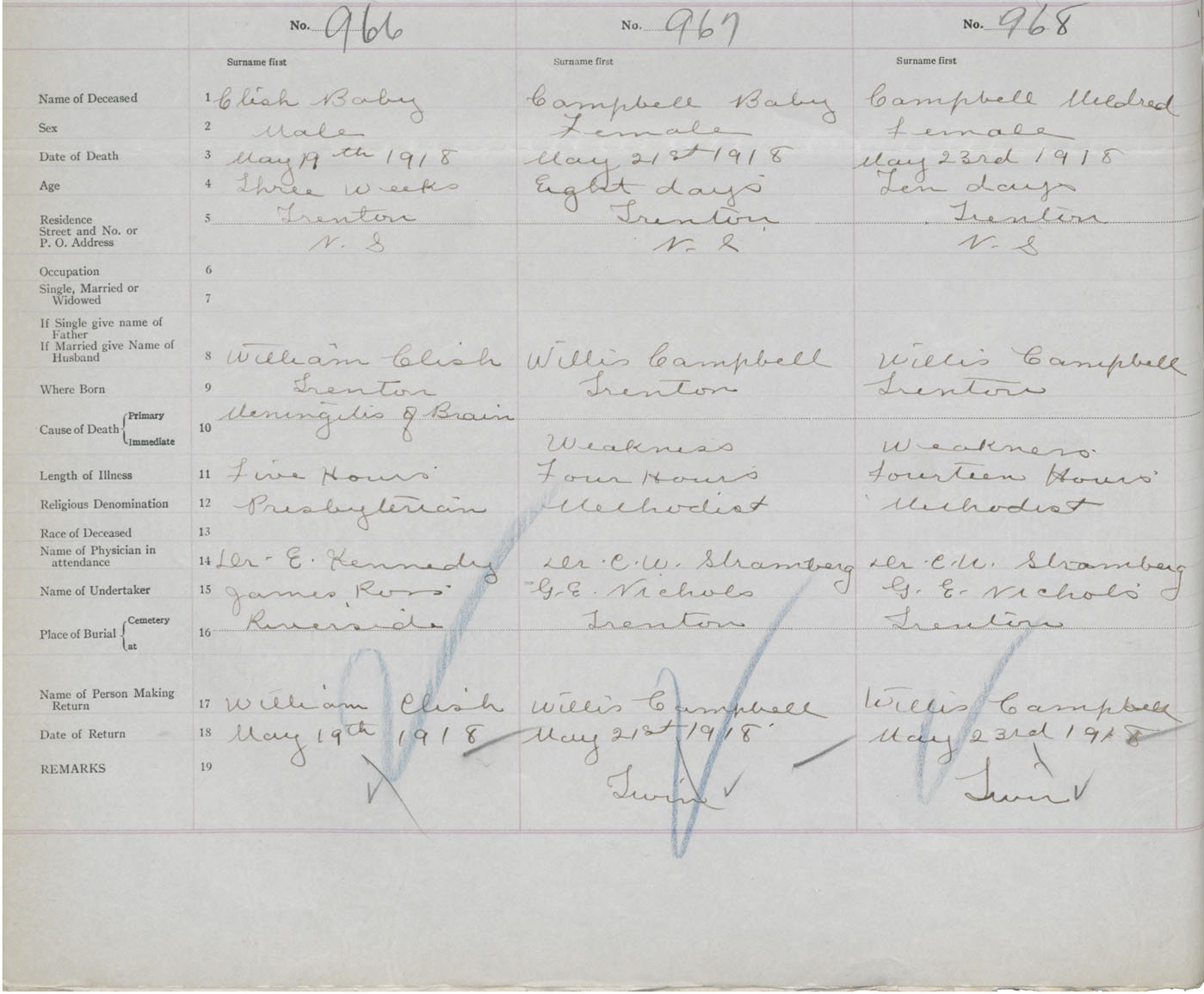 Death Registration: Year: 1918 book: 45 page: 274 number: 968