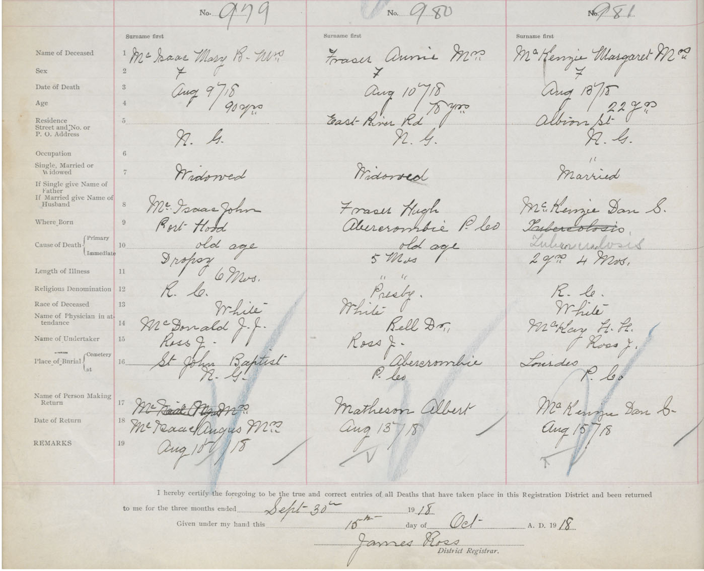 Death Registration: Year: 1918 book: 45 page: 278 number: 981