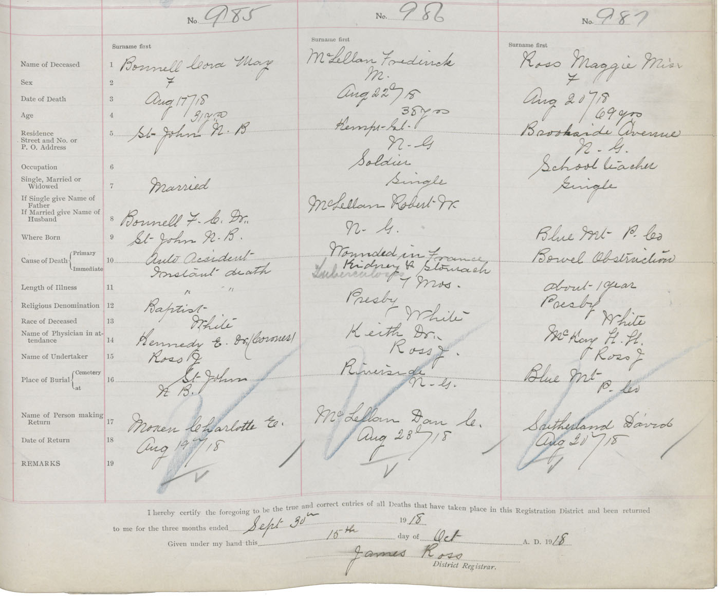 Death Registration: Year: 1918 book: 45 page: 279 number: 987